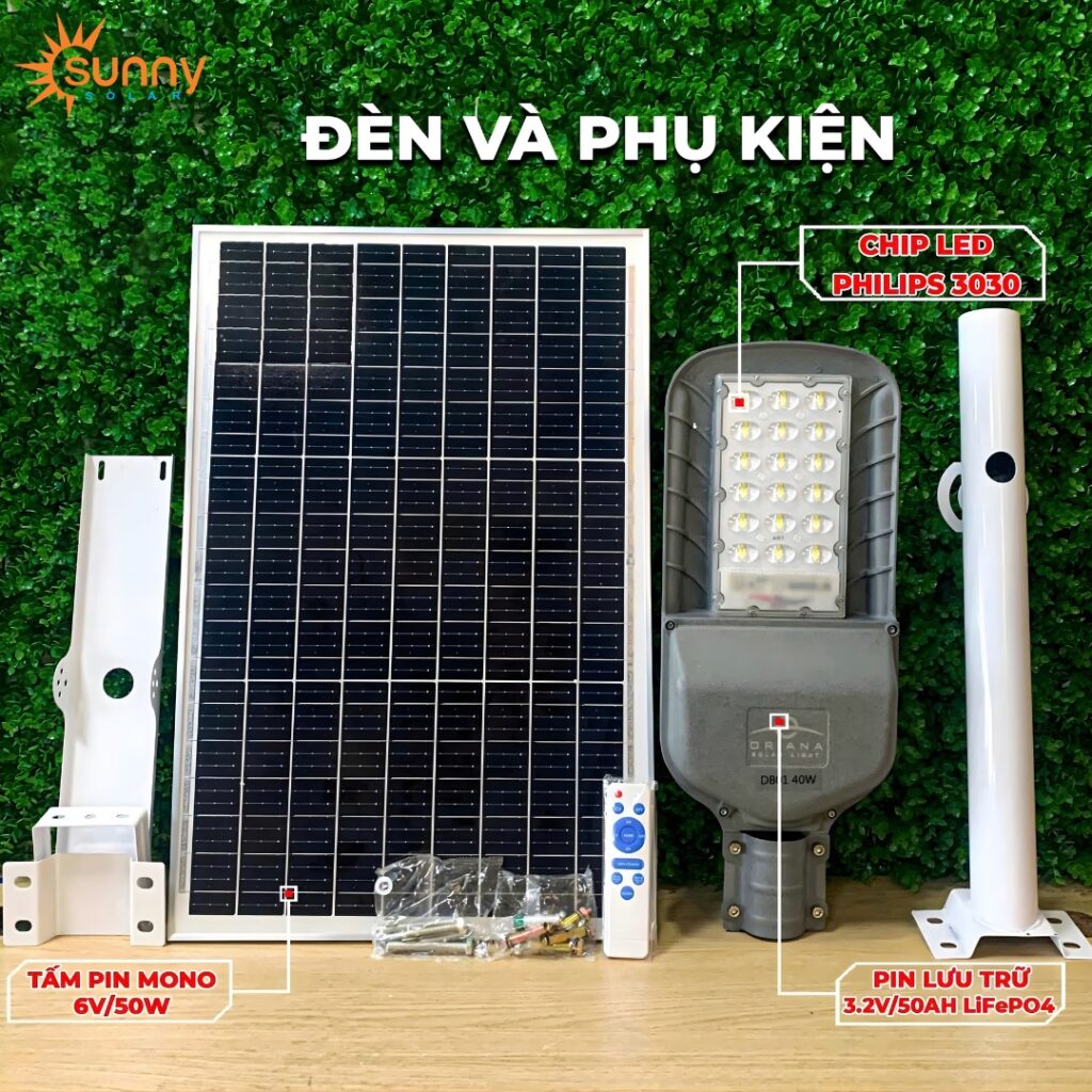 • 1 x Đèn đường năng lượng mặt trời Oriana DB01-1 40W