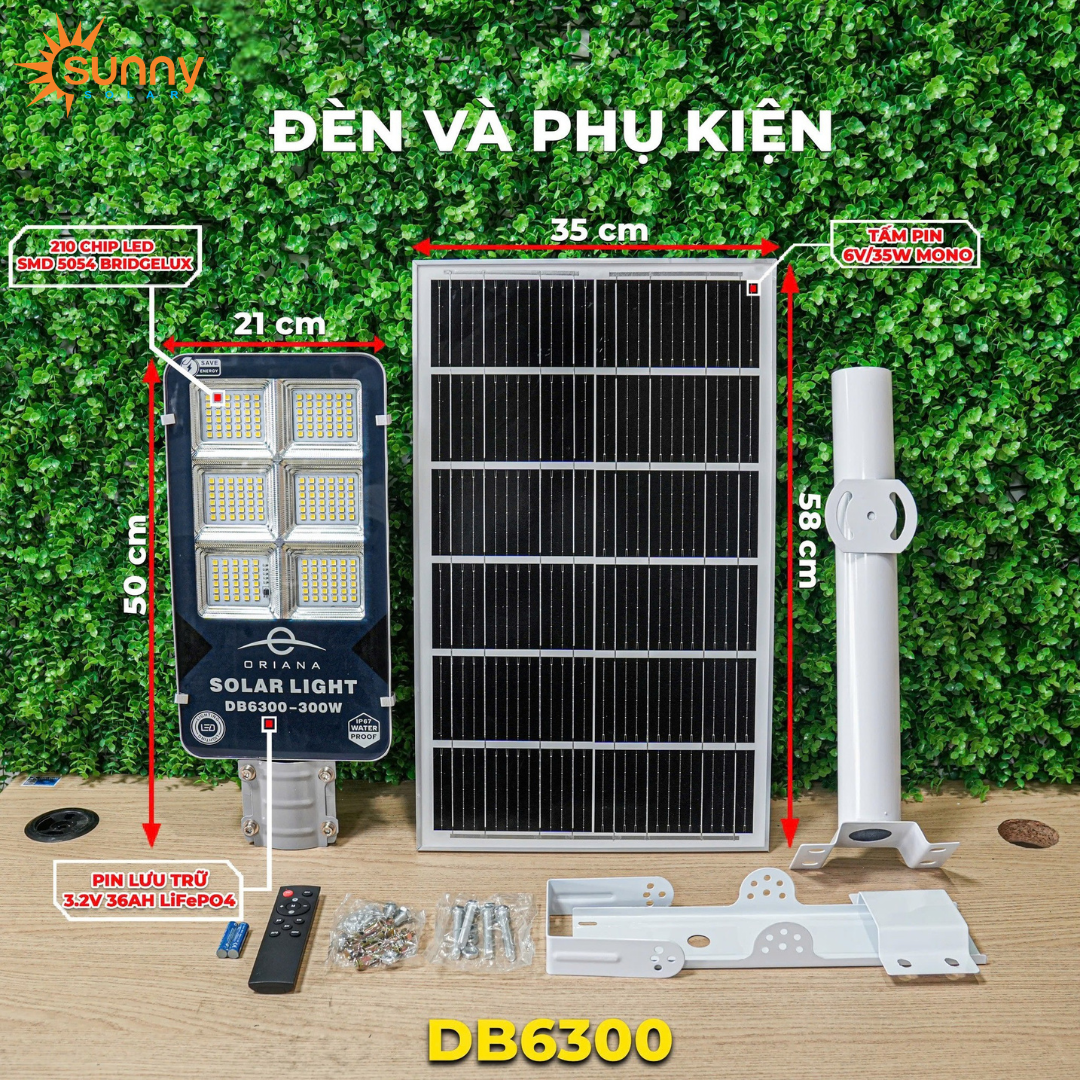 | Bộ sản phẩm bao gồm | Đèn + tấm pin + remote + cần đèn |