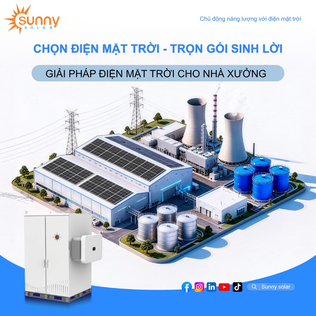 Giải pháp điện mặt trời Sunny giúp tiết kiệm chi phí tiền điện, không phụ thuộc vào điện lưới, bền bỉ và thân thiện với môi trường.