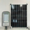 Đèn đường năng lượng mặt trời là thiết bị được thiết kế để phục vụ chiếu sáng đường phố. Đèn hấp thụ quang năng của mặt trời để chuyển hóa thành điện năng chiếu sáng. Thông qua trung gian – Tấm pin thu nạp năng lượng mặt trời để chuyển hóa thành điện năng lưu trữ vào acquy. Đèn được tích hợp cảm biến tự động chiếu sáng vào buổi đêm, có thể chiếu sáng liên tục từ 6-12 giờ ở cường độ cao. Đèn sẽ phát sáng được kể cả vài ngày mưa. Do hệ thống tích trữ năng lượng lớn nên đèn sẽ được hoạt động xuyên suốt.