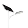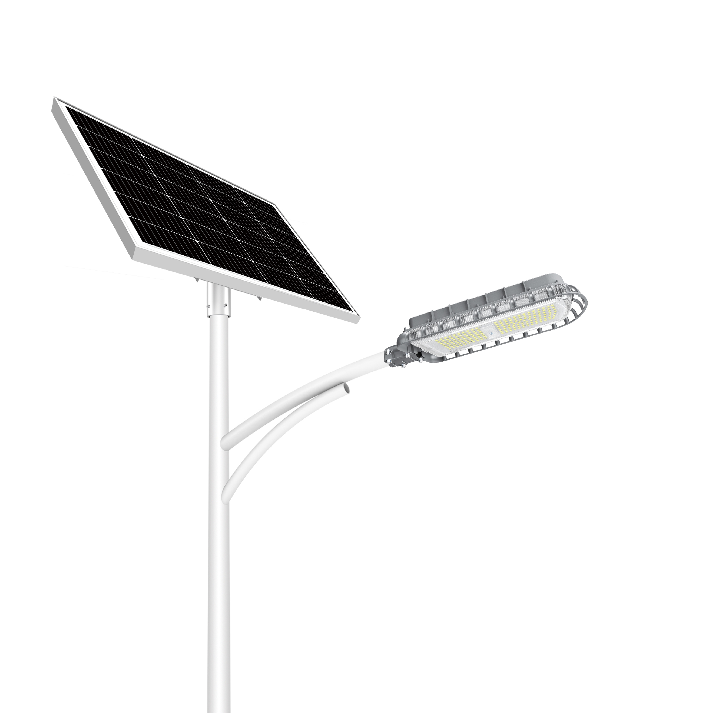 Đèn đường năng lượng mặt trời là thiết bị được thiết kế để phục vụ chiếu sáng đường phố. Đèn hấp thụ quang năng của mặt trời để chuyển hóa thành điện năng chiếu sáng. Thông qua trung gian – Tấm pin thu nạp năng lượng mặt trời để chuyển hóa thành điện năng lưu trữ vào acquy. Đèn được tích hợp cảm biến tự động chiếu sáng vào buổi đêm, có thể chiếu sáng liên tục từ 6-12 giờ ở cường độ cao. Đèn sẽ phát sáng được kể cả vài ngày mưa. Do hệ thống tích trữ năng lượng lớn nên đèn sẽ được hoạt động xuyên suốt.