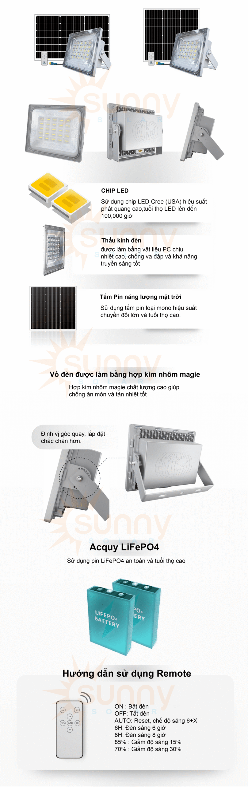 | Bộ sản phẩm gồm | Đèn + Tấm pin NLMT + Remote |