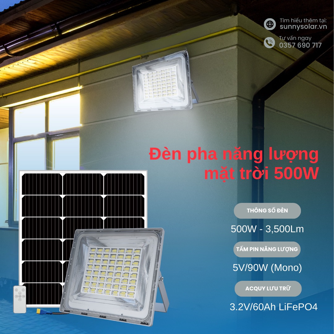 Mô tả đèn pha LED năng lượng mặt trời 500W WaWa Light 5.0 Plus