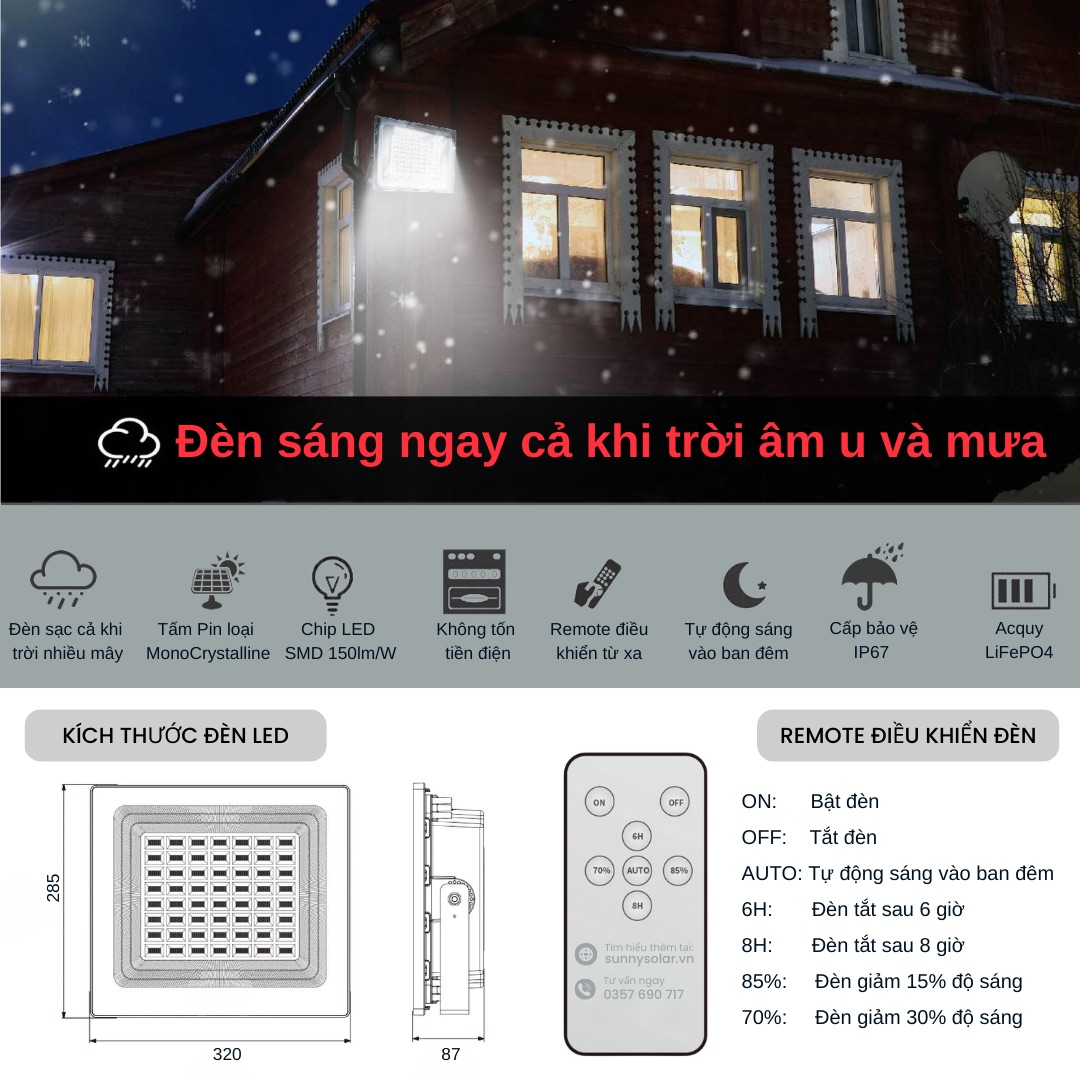 | Sản phẩm gồm | Đèn + Tấm pin NLMT + Remote |