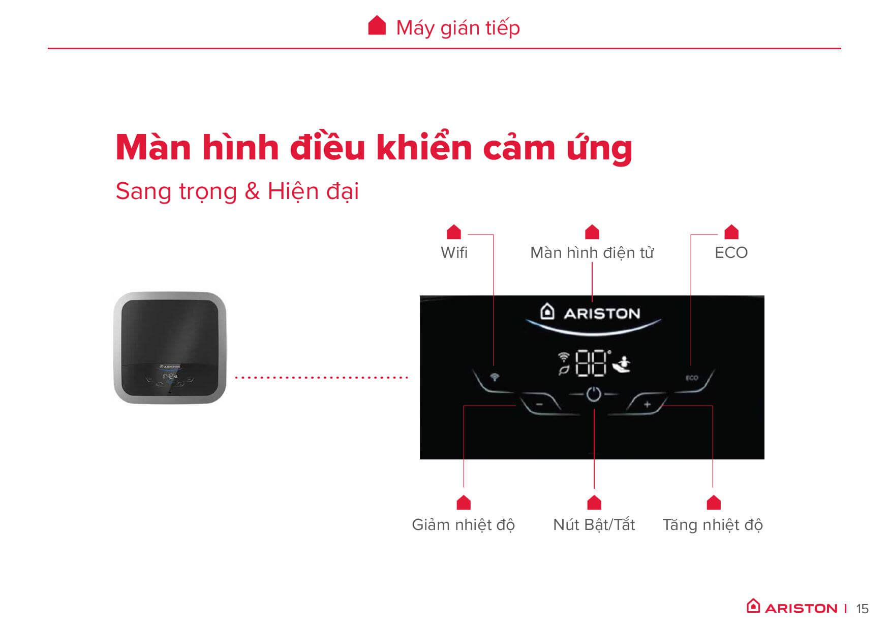 | 9 | Tuỳ chỉnh nhiệt độ nước | Màn hình LED, điều khiển bằng nút cảm ứng. | ||