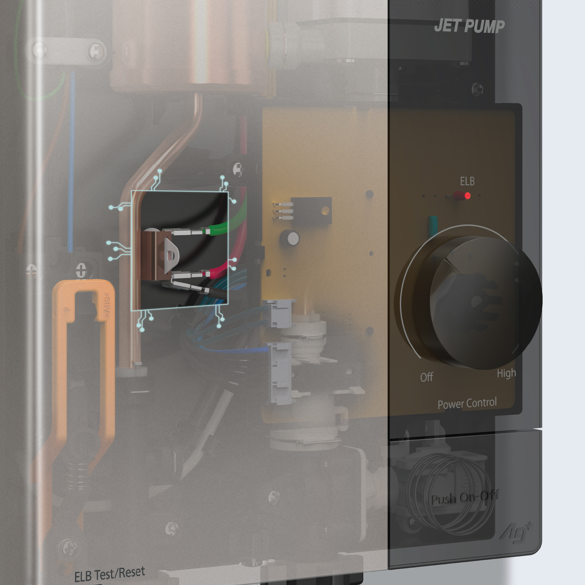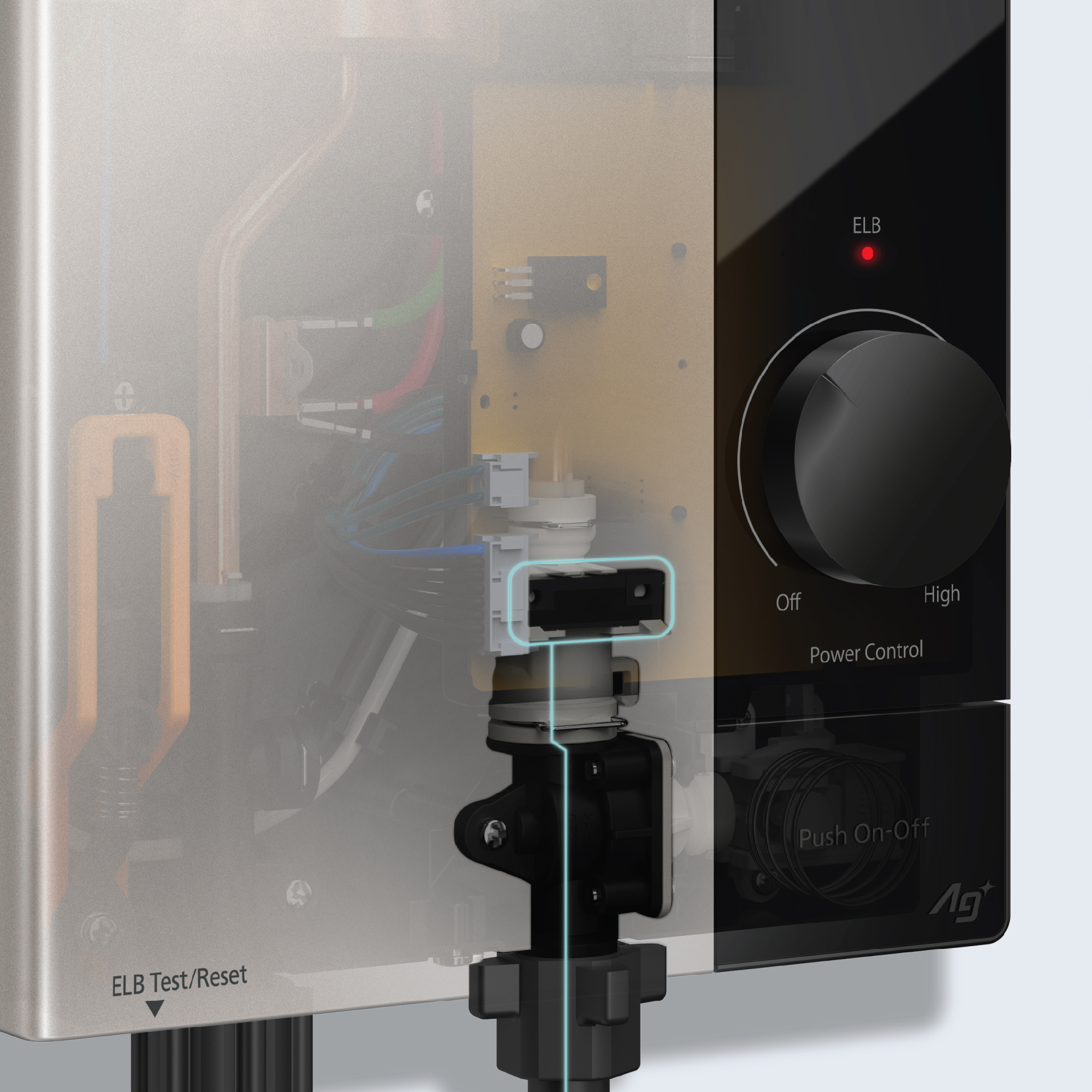 Dễ dàng ngắt trực tiếp đường điện chính và đường cấp nước bằng công tắc bật/tắt với một nút bấm. |